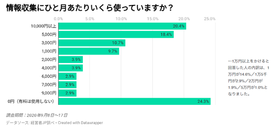情報収集の費用に1か月あたり「1万円以上」が2割