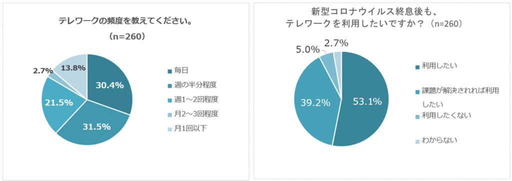 なお、担当者の半数以上が新型コロナウイルス収束後もテレワークを「利用したい」と回答していた。