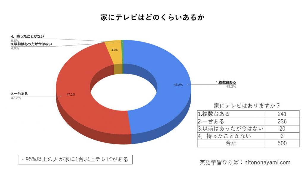 オンラインアンケートでは、まず家にテレビを所有しているかを確認。調査結果によると、全体の95%以上が所有していると答えている。