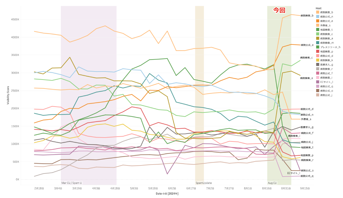 「マンガ」と「病院」では上位サイトのアップデート後の動きに違いがあるのだろう?などと妄想してみるのも様々な施策の仮説立てにも役立つかもしれません。