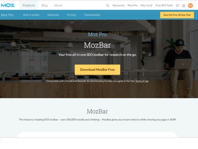 ここではMOSの提供するGoogle Chrome拡張機能「MOZ Bar」をMOSのページ中央の
