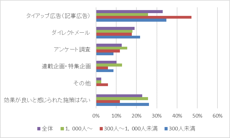 次点に「ダイレクトメール」が続き、「アンケート調査」「連載企画・特集企画」の順となっています。