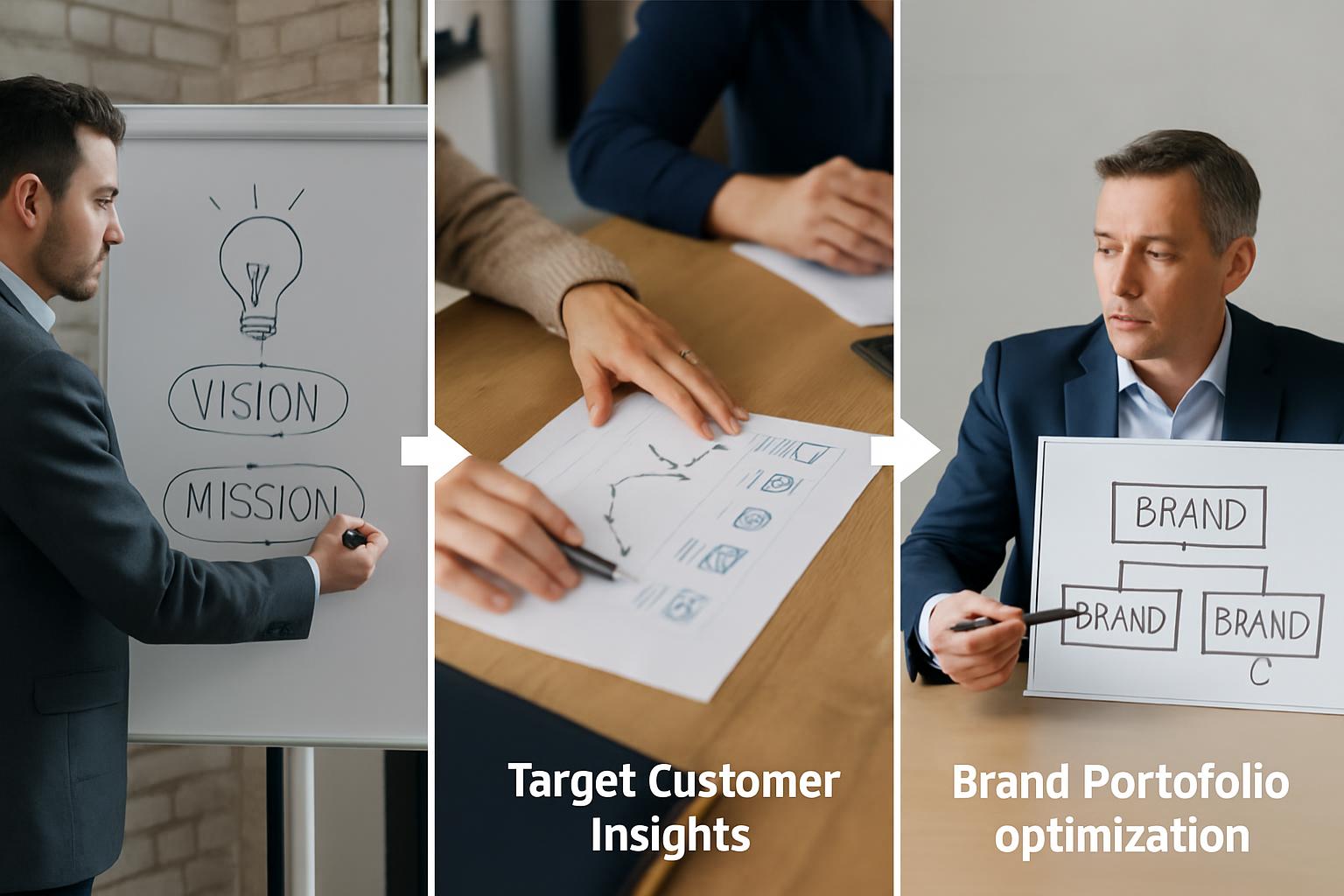 ブランドエクイティ構築の出発点は、ブランドが未来にどのような価値を社会や顧客に提供するのかを示す「ビジョン」と、そのために果たすべき使命である「ミッション」を明確に定義することです。 これらは、あらゆるマーケティング活動や組織運営における意思決定の揺るぎない指針となります。