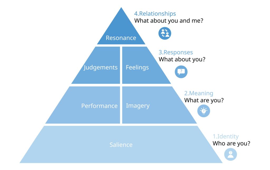このピラミッドは、下層のブロックがしっかりと構築されて初めて、その上のブロックを積み上げられる構造になっています。 まずブランドの存在を広く認知させ(セイリエンス)、次にそのブランドが持つ機能的・情緒的な意味を顧客に理解してもらい(パフォーマンス、イメージ)、それに対するポジティブな反応を引き出し(ジャッジメント、フィーリング)、最終的に顧客との間に強い絆(レゾナンス)を築き上げるというプロセスを示しています。