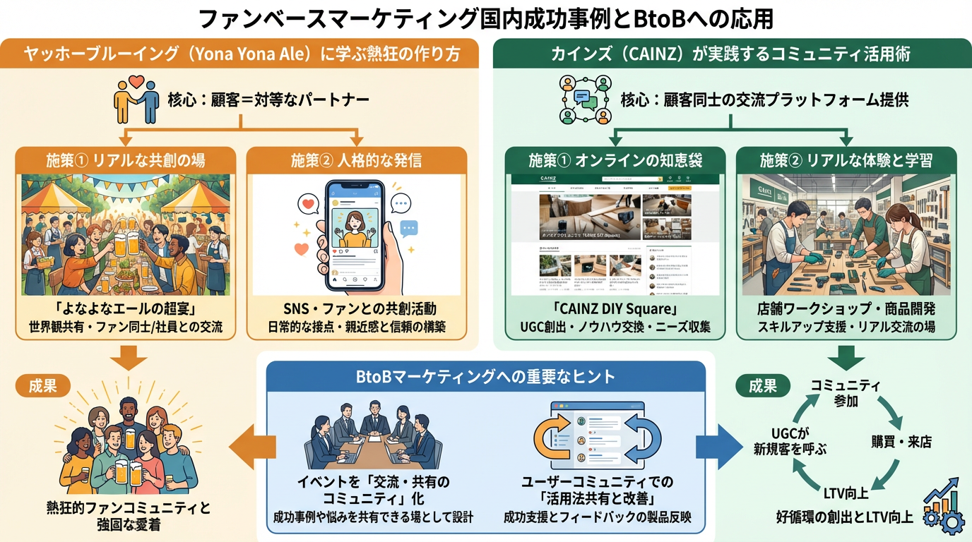 BtoBビジネスにおいても、ユーザーカンファレンスや限定セミナーを単なる情報提供の場とせず、参加者同士が交流し、成功事例や悩みを共有できる「コミュニティ」として設計することで、ヤッホーブルーイングのような熱狂を生み出すことが可能です。