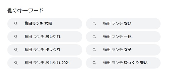 Googleの場合、関連キーワードの表示のされ方は以下の通りです。